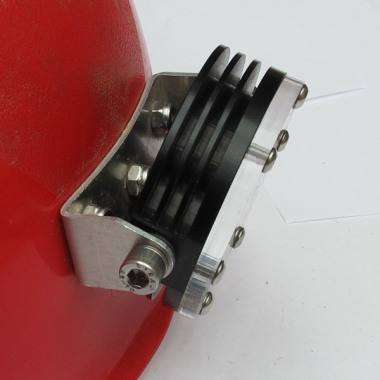 Lightweight alloy lamp bracket for solid caving proof fixing to helmet, with 'long' cap head bolts into lamp body. The proven, no nonsense solution. No headbands, no push bike mounts, and no Go-pro mounts or other solutions that compromise the Nora 4 as a caving light.